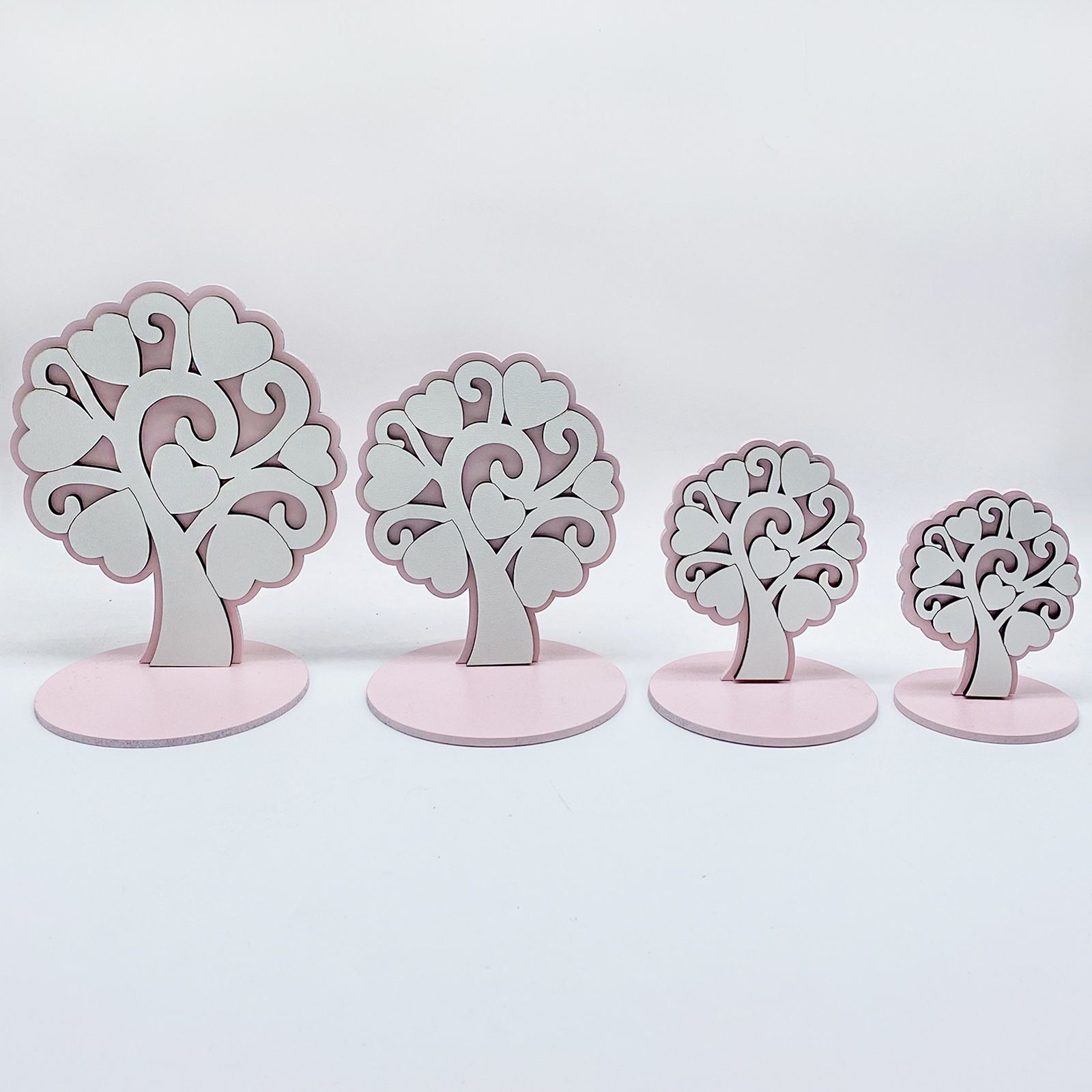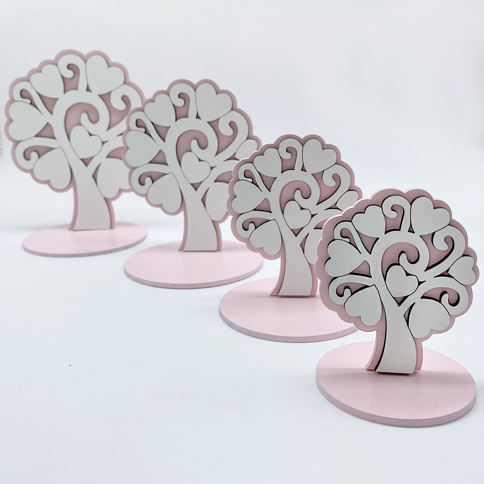 Seleziona questi alberi della vita in legno naturale, in doppia tonalità rosa e bianco per le foglie, con base rotonda in tinta. Perfetti per realizzare bomboniere originali a tema albero della vita!