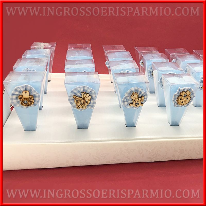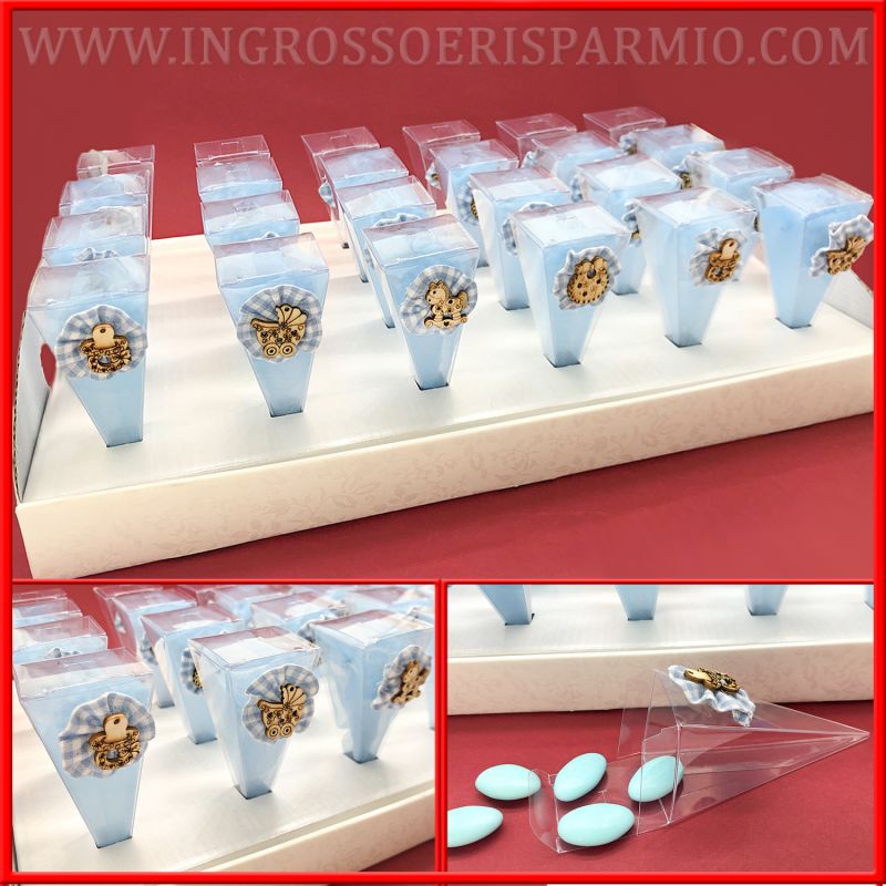 Ecco l'offerta che fa per te: bomboniere nascita con coni porta confetti decorati appositamente per la nascita di un maschietto!