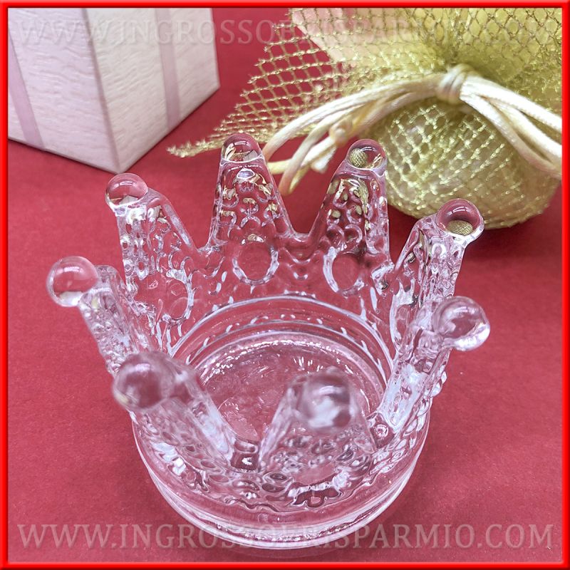 Bomboniera corona di vetro per idee battesimo, bomboniere comunione, pensierini e portaconfetti matrimonio tema fiabe.