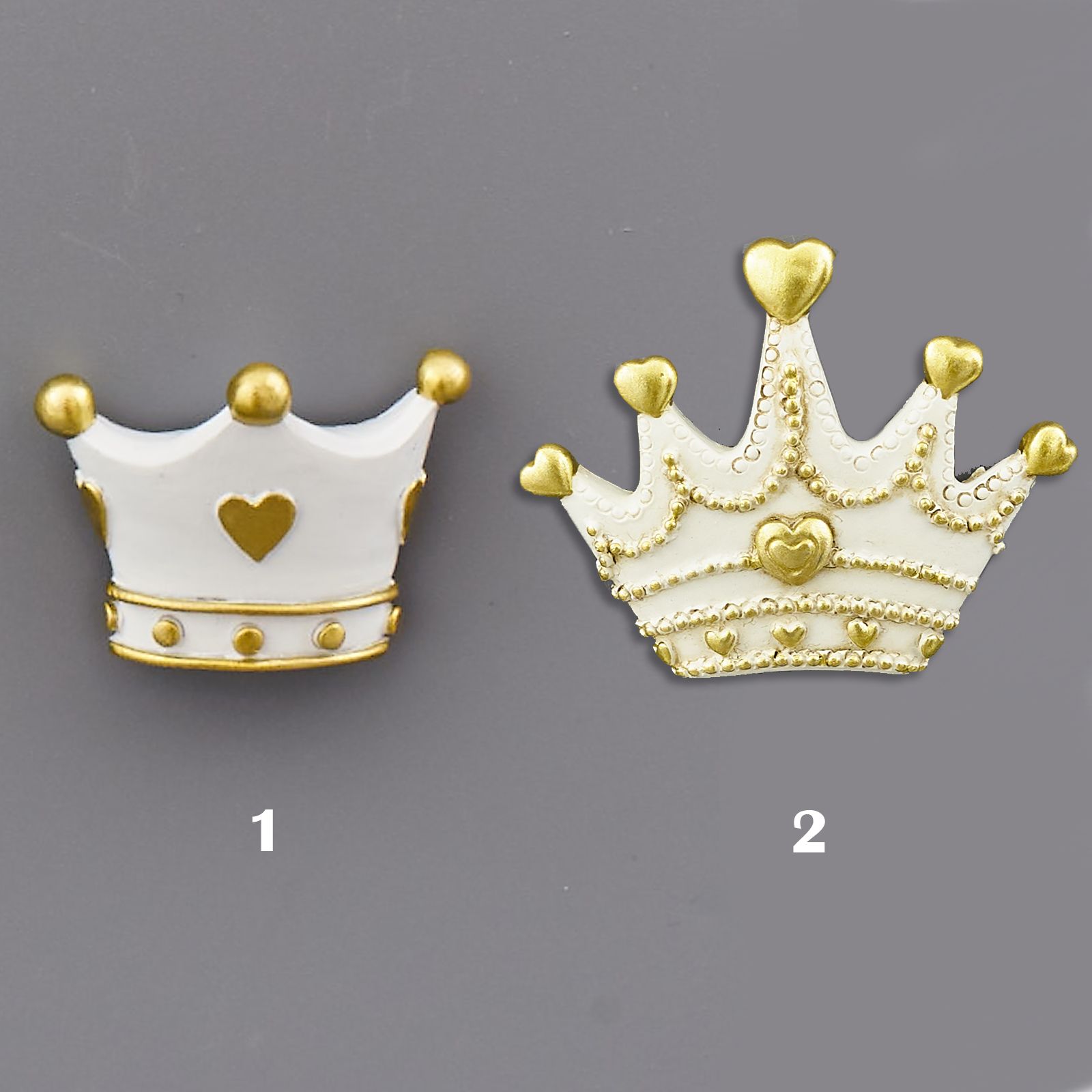 Calamite in resina colorata a forma di corona, bianche con dettagli oro disponibili a tre o a cinque punte.