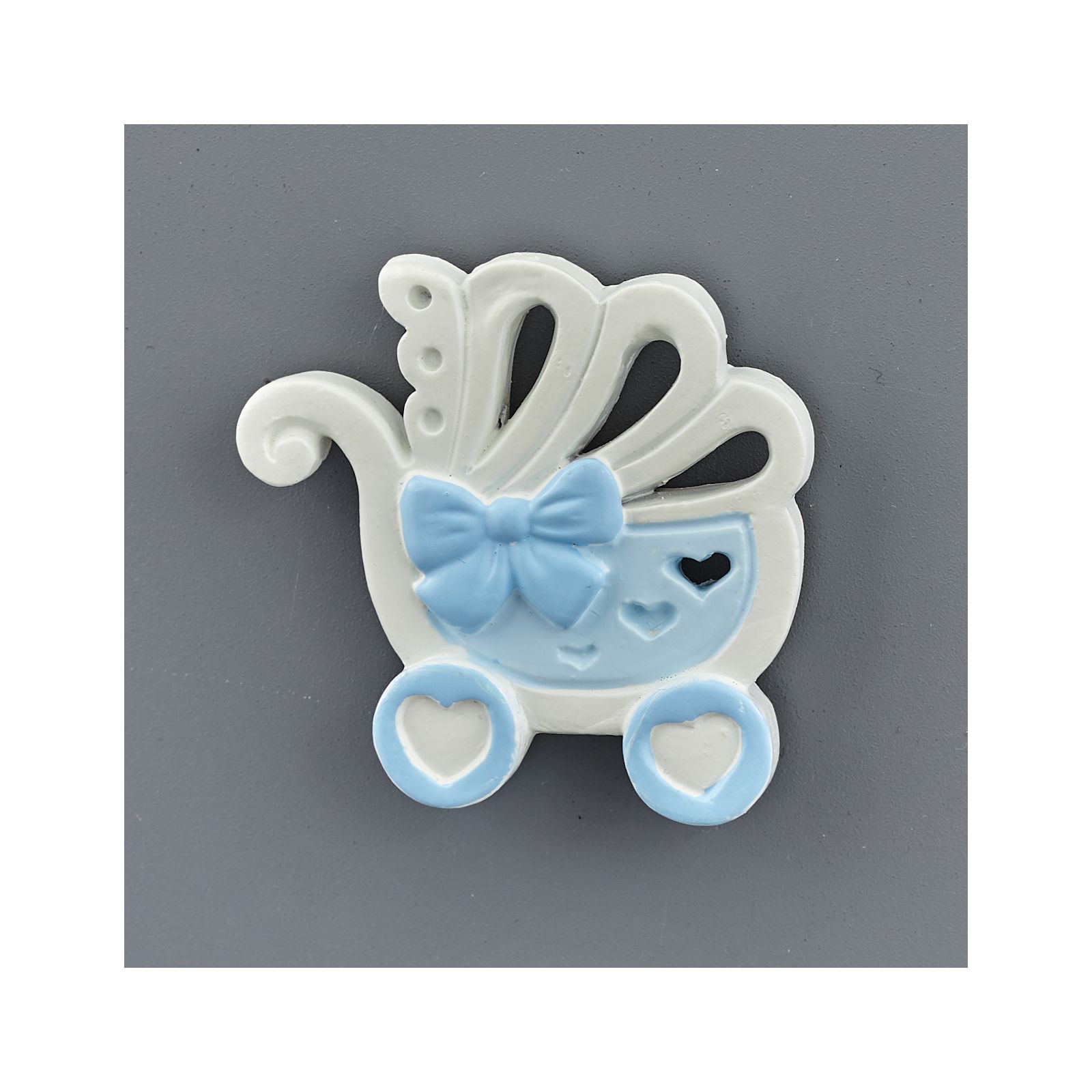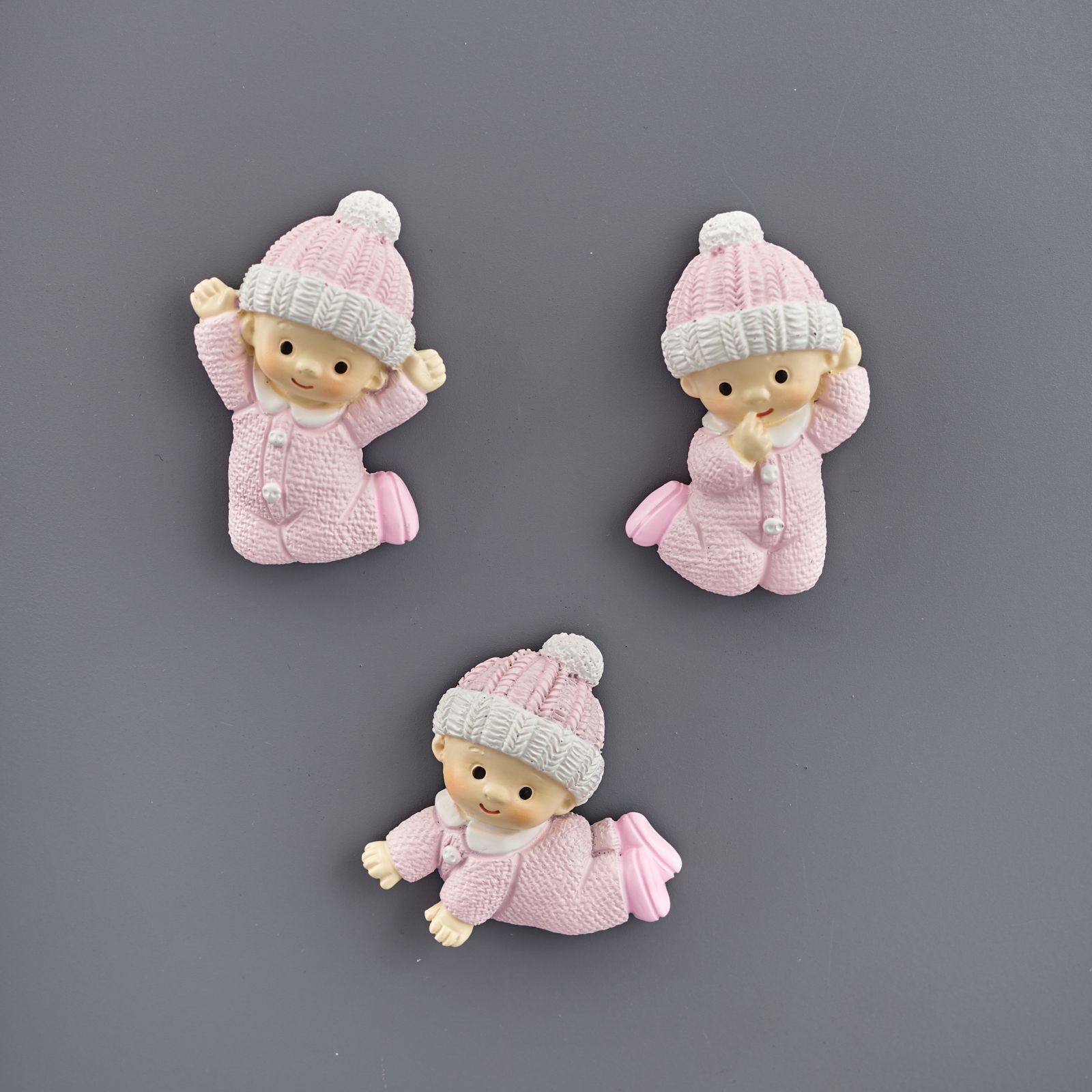 Oggettini e calamite in resina, disponibili in vari modelli, in tonalità rosa e celeste per realizzare oggettini nascita economici.