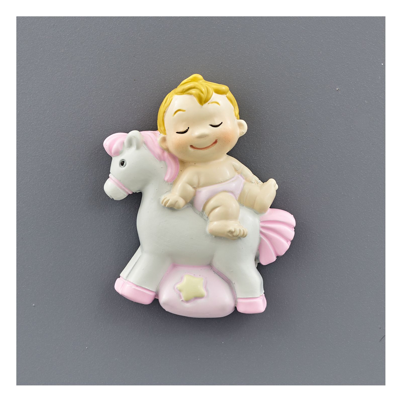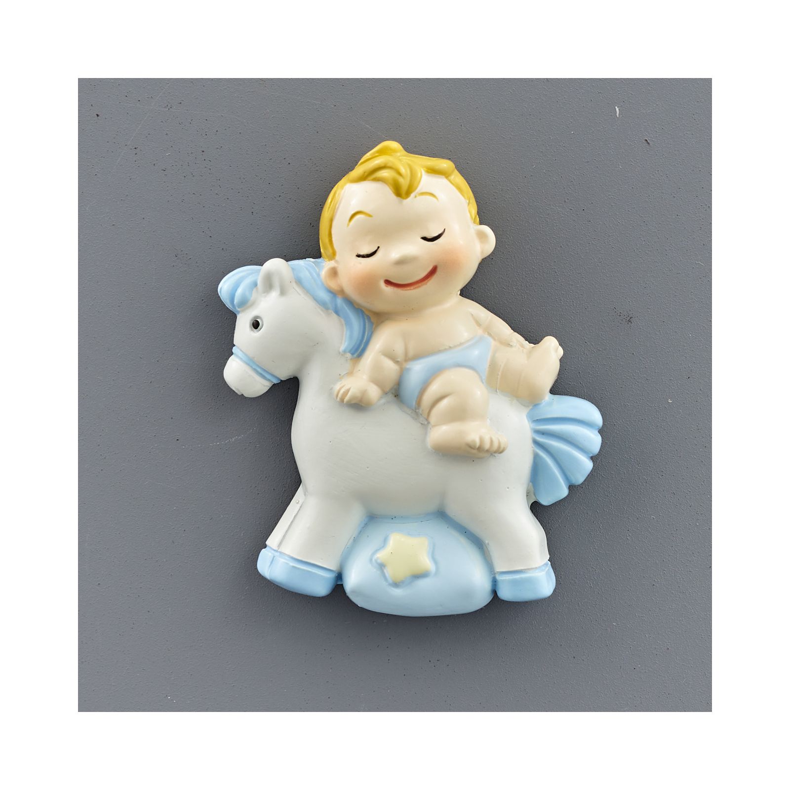 - Modello 4 - Cod. C1B1240257 - Calamita Bimbo su cavallino celeste - Dimensioni: 4 x 1.5 x 4 cm circa;