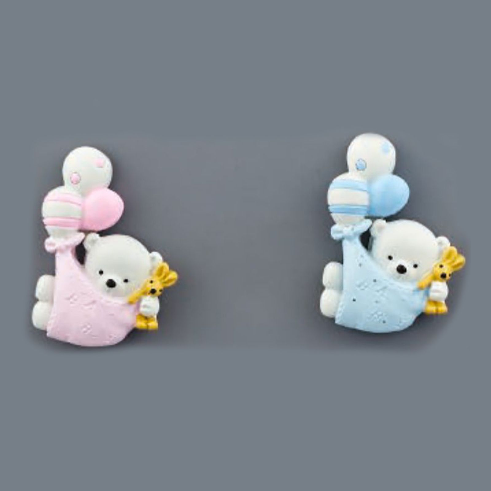 - Modello 2 - Cod. C1B1240286 - Calamita orsetto in fagotto celeste - Dimensioni: 4 x 1.5 x 4 cm circa;