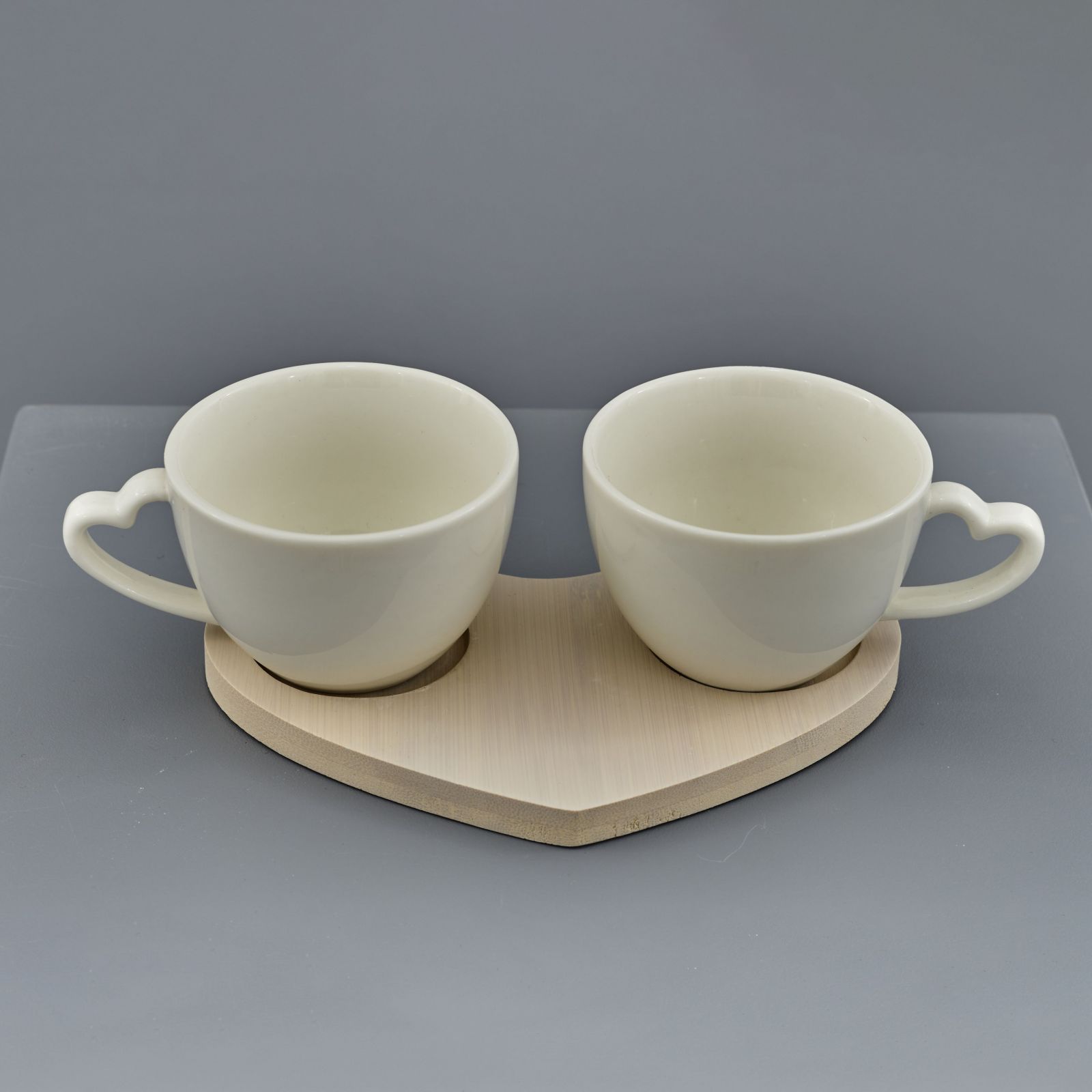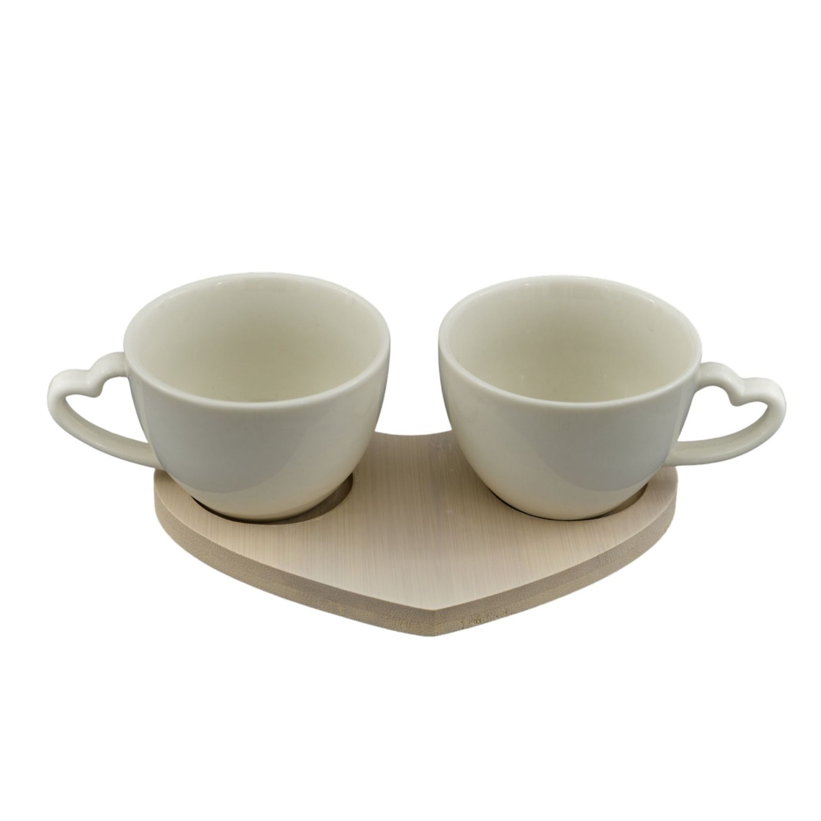 La bomboniera ideale per rendere speciali le vostre nozze d'oro o d'argento è un set di due tazze da caffè in ceramica con una meravigliosa base a forma di cuore in legno. Un dettaglio pensato con cura e precisione, dall'aspetto elegante e raffinato, ideale per la cucina di tutti i giorni.