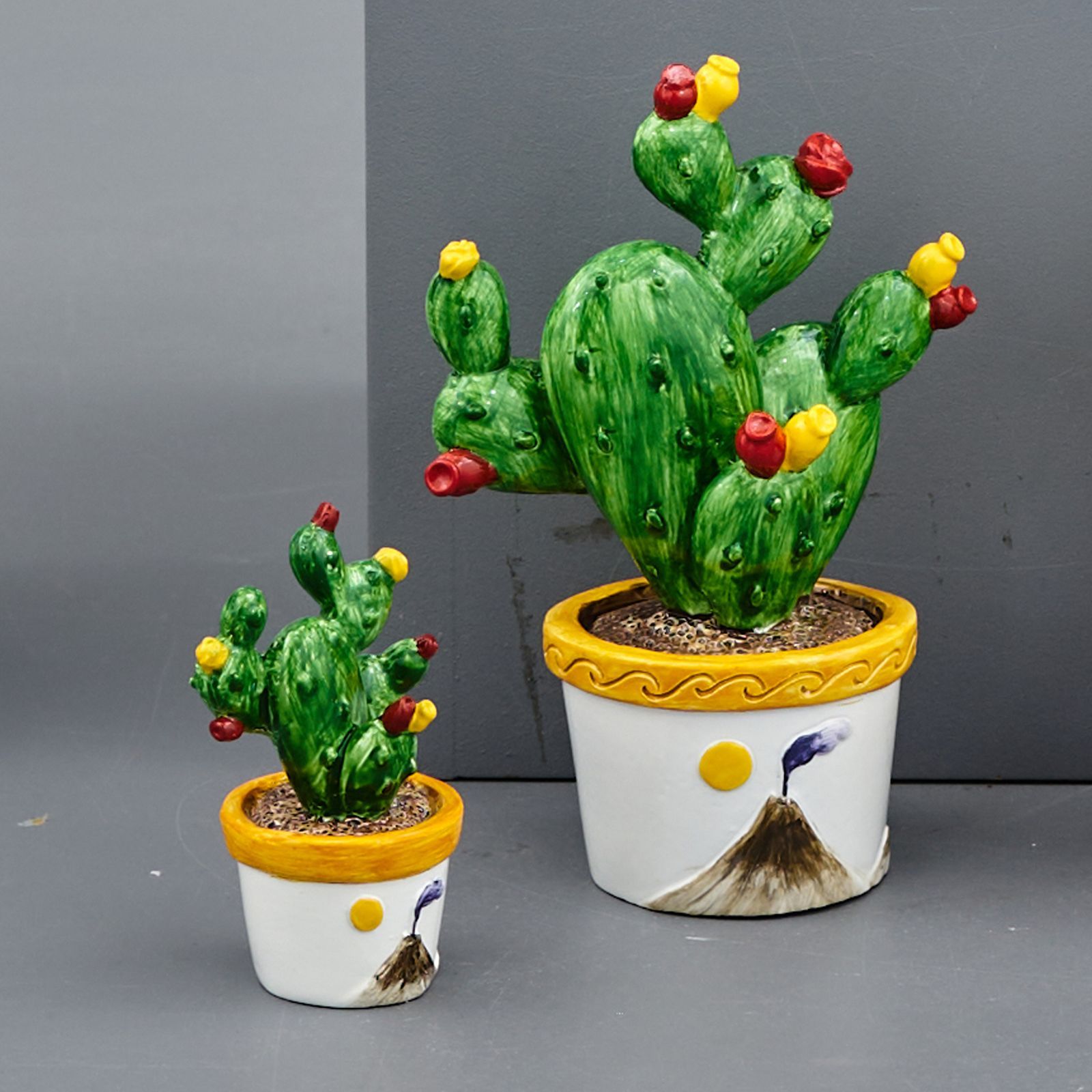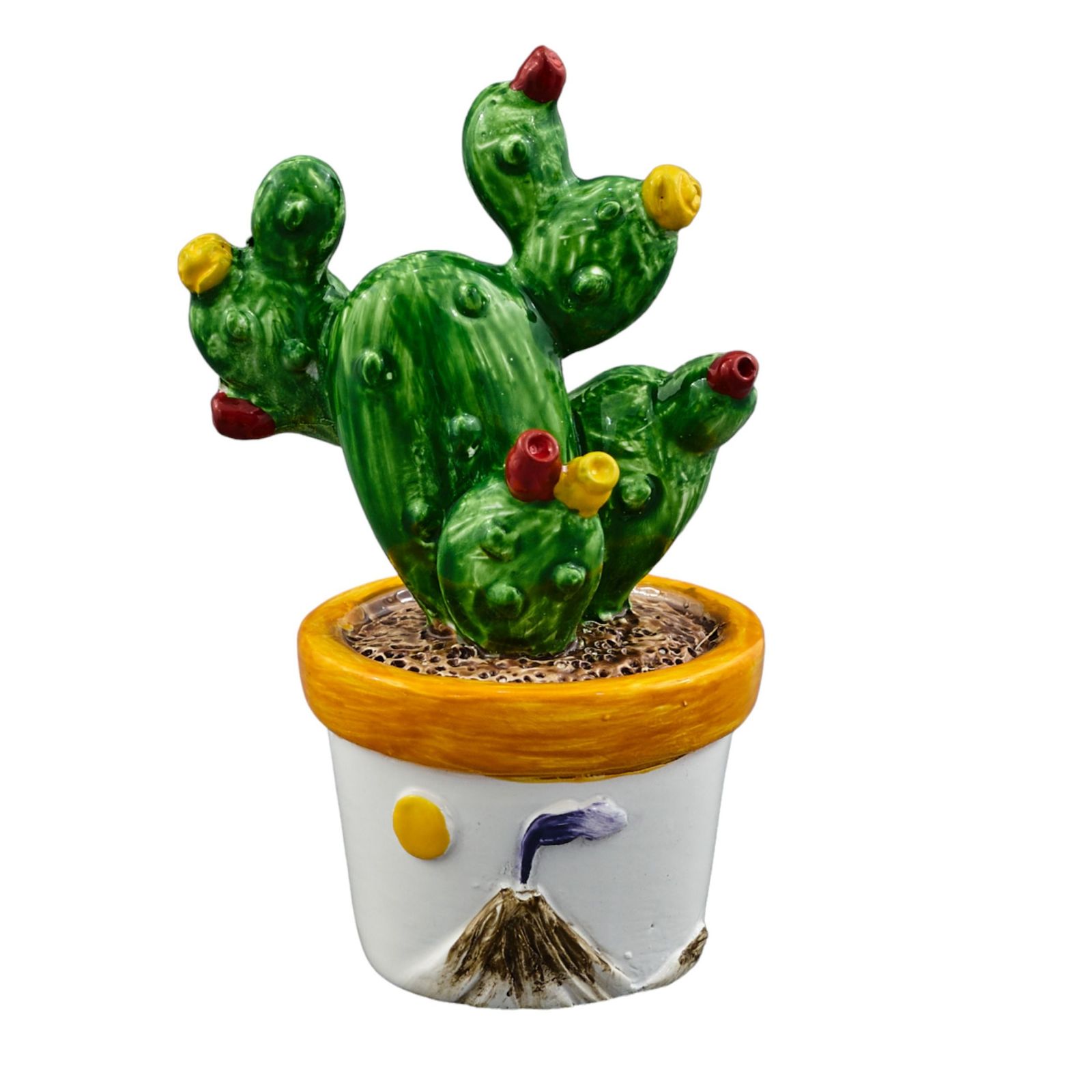 Dona un tocco di originalità alla tua festa a tema Sicilia con questa bomboniera segnaposto speciale. Una piantina di cactus in ceramica con fiori gialli e rossi, con vaso che raffigura un vulcano e un sole, è un'idea unica per stupire i tuoi invitati. Disponibile in due dimensioni Standard (4,3x3,4x6,8 cm circa) e Grande (8,6x5,2x12 cm circa) sarà un pezzo da conservare per ricordare, con gioia, il tuo grande giorno. Un regalo speciale che rappresenterà i simboli della Sicilia.
