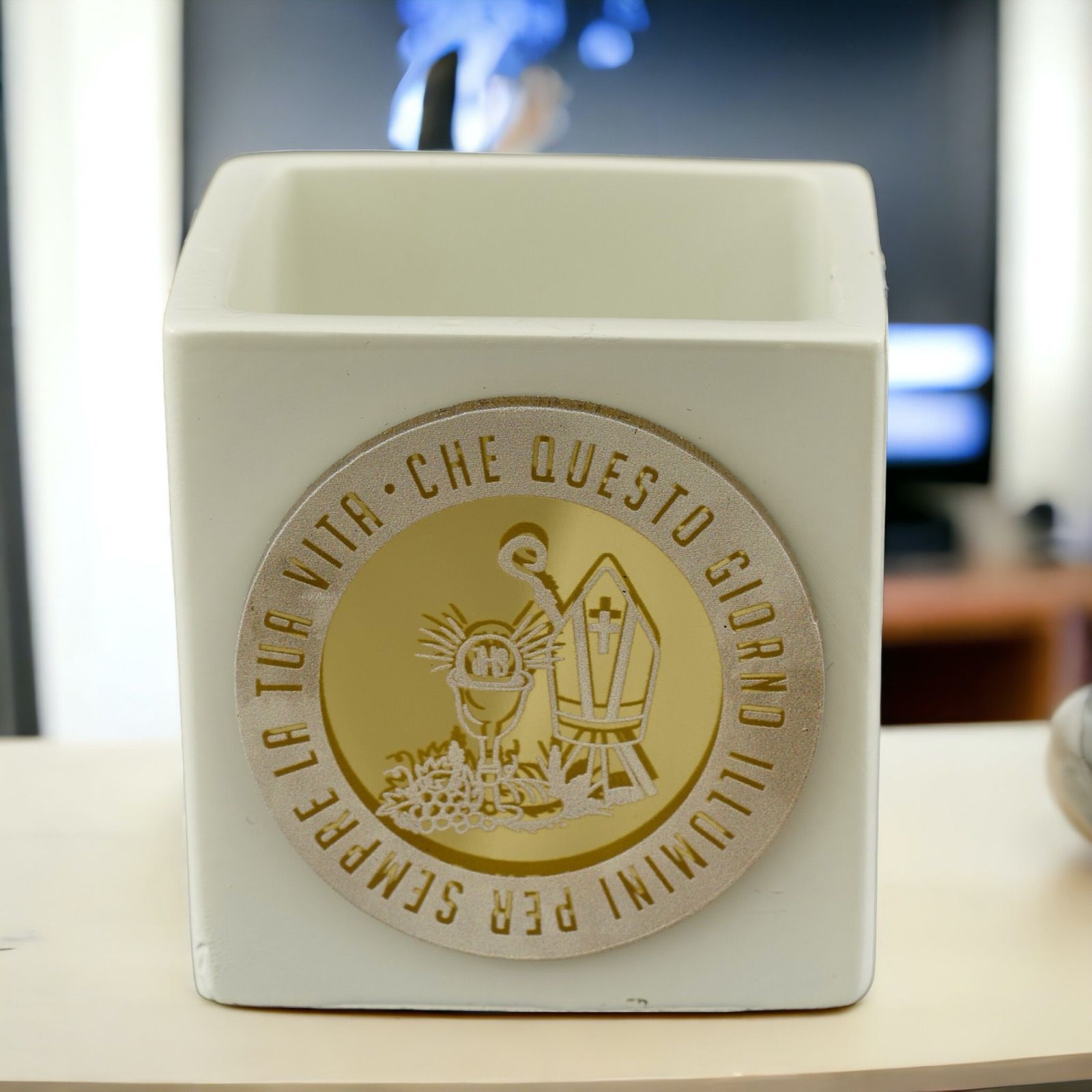 Regala uno straordinario vaso portapiante ai tuoi amici e familiari in occasione della cresima e della comunione insieme. Un prodotto assolutamente unico, con la frase: "che questo giorno illuminati per sempre il tuo cammino" incisa su di esso.