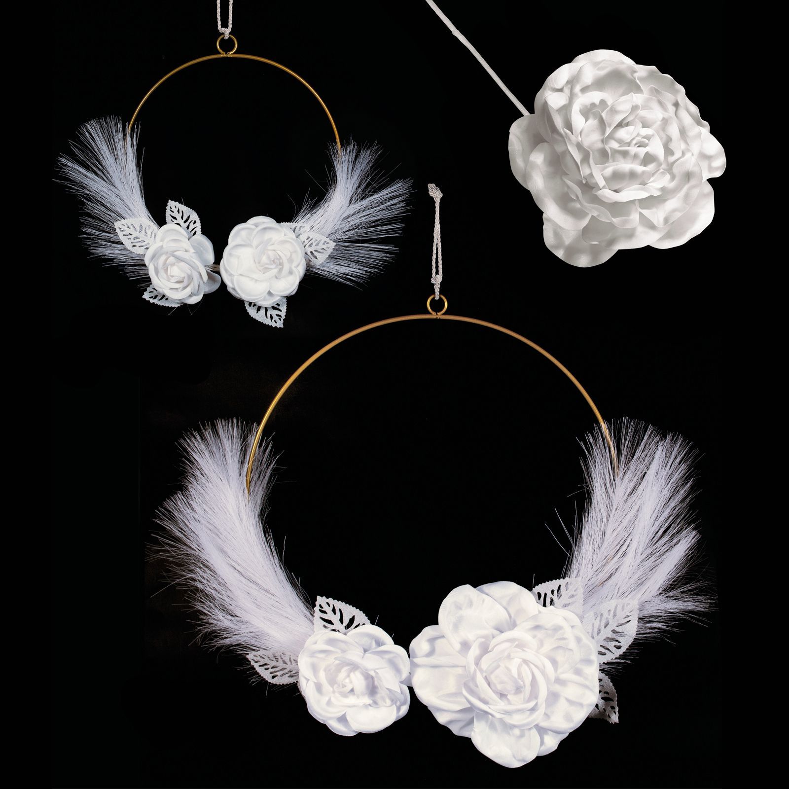Questa deliziosa decorazione a forma di fiore è perfetta per ogni tipo di evento, come battesimi, comunioni, cresime, diciottesimi, lauree, matrimoni e anniversari. Realizzata in morbido tessuto, ha dimensioni di cm 20 x h. 40 e è disponibile nei colori bianco, panna, rosa antico e ottanio.